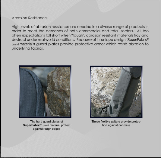 The core element in SuperFabric technology is the proprietary armored surface along with a combination of material science and strategic geometric patterns that transform a variety of fabric substrates into what is collectively known as SuperFabric brand materials.